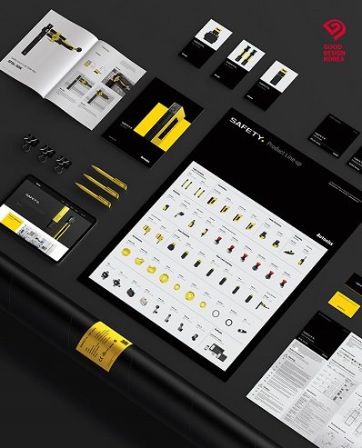 이번에 수상한 오토닉스 세이프티 브랜드는 ‘안전 영역(Safety Area)’에 대한 브랜드 아이덴티티를 구축하기 위해 노란색과 검은색의 대비를 이용하여 안전을 시각화했으며 네모 도형으로 안전 방호를 의미할 수 있도록 디자인했다.