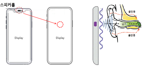 ▲디스플레이 스피커 기술이 스마트폰에 적용되면, 스피커홀이 없는 디자인과 명료한 통화가 가능해진다. (출처 : 산업부)