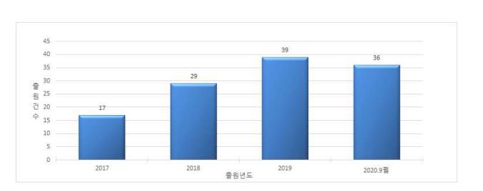 ▲OLED 증착용 금속마스크 제조장치 특허출원 추이(2017년~2020년 9월)