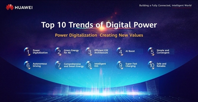 화웨이는 전력의 디지털화, 모두를 위한 그린 에너지, 효율적인 엔드투엔드 아키텍처 등을 디지털 전력 산업의 10대 트렌드로 꼽았다.