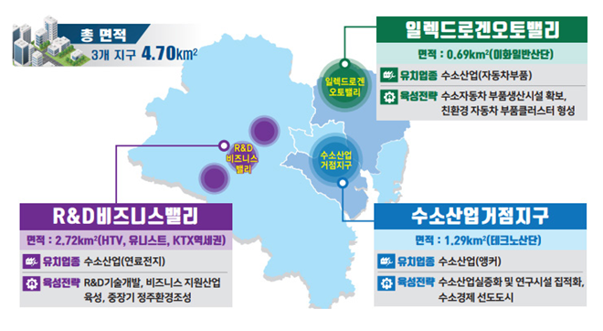 울산시에 소재하는 수소 관련 기업은 약 80여 개로 수소전기차, 수소충전·수소생산, 수소부품 및 설비업종이 주를 이루고 있고 전국적으로는 400여 개의 크고 작은 기업들이 있다. 울산경자청은 먼저 이 중 20여개의 기업들을 대상으로 활동에 나선다.