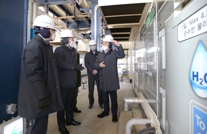 성윤모 산업통상자원부 장관이 8일 오전, 대산 수소연료전지 발전소 현장을 방문해 첫 수소경제 활성화 관련 행보에 나섰다.