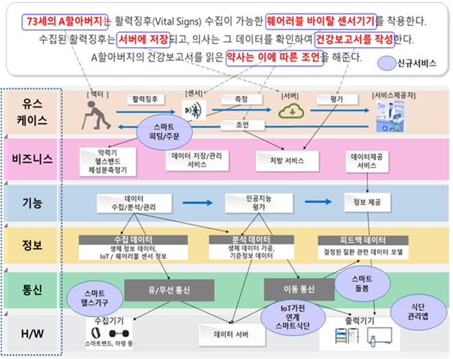 시스템 표준화란 산업계에서 활용되는 개인건강체크 서비스 등과 같은 활동 시나리오를 분석해 관련한 비즈니스, 기능, 정보, 통신, HW 등의 요구사항을 도출하고, 이를 토대로 새로운 서비스 모델과 표준을 개발하기 위한 신개념 표준화 방식이다.