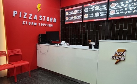 피자 전문점 피자스톰은 창업주 정민규 대표가 8년간 연구하고 분석한 노하우를 담아 만든 미국식 피자를 지향하는 프랜차이즈다. 피자스톰의 피자는 기본적으로 XL 사이즈의 크기의 피자와 크러스트라고 불리는 피자의 끝 부분까지 토핑, 일명 ‘엣지까지 토핑’, ‘폭풍토핑’이라는 슬로건을 내세우고 있다.