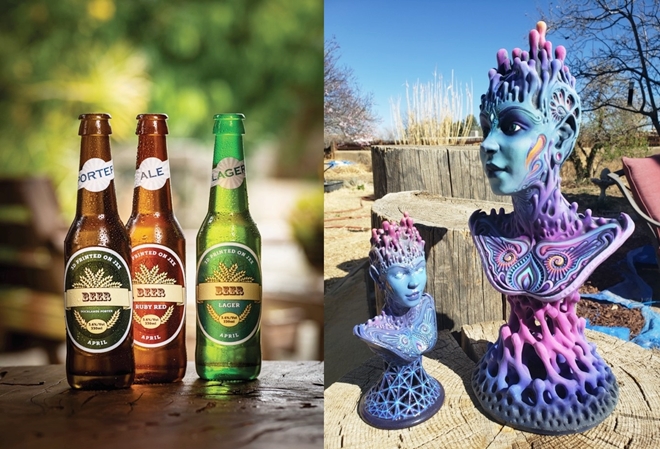 베로울트라화이트와 베로울트라블랙 소재로 제작된 병 라벨(좌)과 예술품