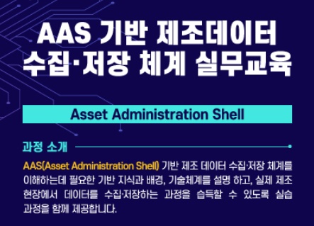 이번 교육은 AAS 활용기술, 장비별 AAS 템플릿 작성 방법, 공급기업 대상 OPC-UA 표준 소프트웨어 설치 및 활용 방법 등에 관한 이론으로 진행된다, 교육을 통해 스마트제조 분야의 요소기술인 AAS의 중요성을 이해하고 제조현장의 생산요소들을 AAS로 모델링하는 방법을 학습한다.