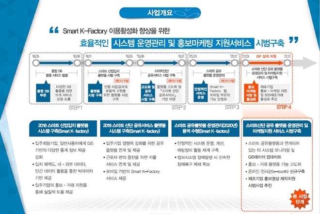 스마트산단 공유플랫폼 온라인 전시관에서는 K-Factory 기업회원을 대상으로 제조기업 홍보관 서비스(상시관), 온라인 박람회 개최 서비스(특별관)을 제공한다.