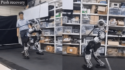 구동기(Actuator)·모터(Motor)·감속기(Reducer) 등 하체 플랫폼을 구성하는 모든 핵심 구동 부품을 연구팀이 직접 설계·제작했다. 이는 하드웨어 자립 측면에서 기술적 독립성을 달성한 의미다. 향후 로봇 성능의 자율적인 개선과 양산화에 유리한 기반을 마련했다는 평가다. 소프트웨어 측면에서는 로봇의 움직임을 제어하는 인공지능(AI) 제어기가 자체 개발한 강화학습(Reinforcement Learning) 알고리즘을 통해 훈련됐다.