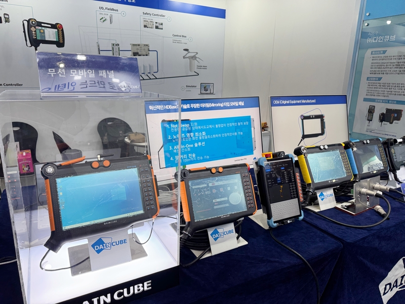 산업용 로봇 컨트롤러 전문 기업 다인큐브가 로봇 산업 전문 전시회에서 각종 모바일 티치 펜던트와 모션 제어 솔루션을 소개했다.
