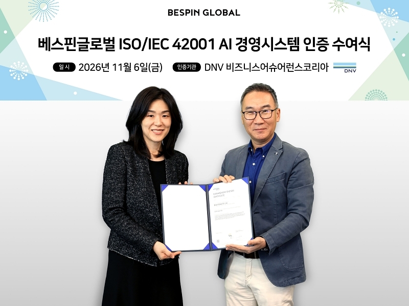 글로벌 인증기관 DNV코리아 이소영 대표는 “AI 활용이 확대되는 가운데 ISO/IEC 42001 인증은 단순한 기술력을 넘어 책임 있는 AI 운영 체계를 갖추었음을 의미한다”며 “이번 인증을 통해 베스핀글로벌의 글로벌 경쟁력이 한층 제고될 것으로 기대한다”고 말했다.