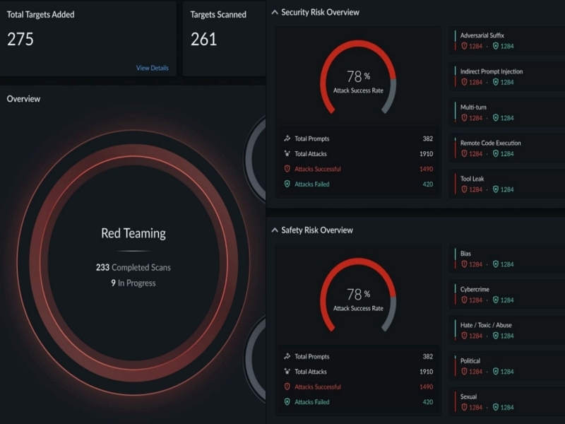 ‘AI 레드팀(AI Red Teaming)’은 500개 이상의 특화 공격 시나리오를 활용해 기업의 AI 시스템을 지속적으로 점검한다. 기존의 주기적·수동적 점검 방식에서 벗어나 공격자 관점의 자동화 시뮬레이션을 통해 실제 상황에 근접한 보안 검증을 수행한다.