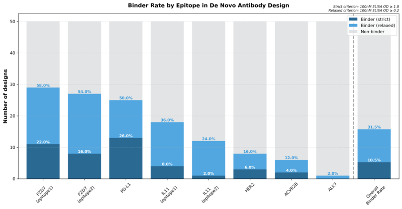 갤럭스는 이번 결과를 통해 항체 설계 기술이 ‘탐색’ 중심에서 ‘정밀 설계’ 단계로 진입했음을 강하게 입증했다. 회사는 최소 설계 세트인 50개만으로도 30% 이상의 후보가 타깃에 정확히 결합하는 결과를 확인했다. 이는 기존 실험 기반 스크리닝 대비 수천 배 높은 성공률이자, 글로벌 학계에서 보고된 다섯 개의 드노보 항체 설계 그룹 중에서도 최상위권 성과로 평가된다. 특히 성공한 항체 중 상당수는 별도의 추가 최적화 없이 약물 후보로 개발 가능한 수준의 결합력을 보였다.