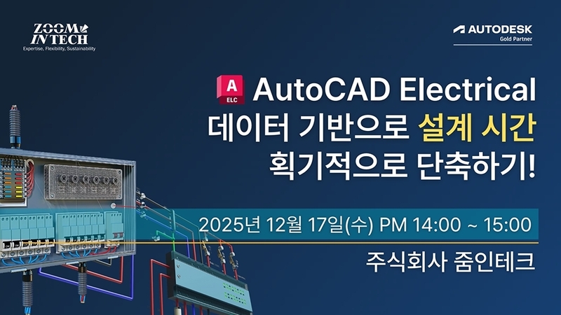 데이터 기반 전장 설계에 대한 요구가 높아지면서 제조 및 자동화 장비 산업에서는 설계 품질과 개발 효율을 함께 확보하는 통합 엔지니어링 환경의 필요성이 커지고 있다. 이번 ‘AutoCAD Electrical: 데이터 기반 설계시간 획기적 단축 전략’ 웨비나는 전기제어와 배선, 기계 구성 요소를 별도로 관리하던 기존 방식의 한계를 짚고 전장 데이터와 기계 설계 데이터가 연동되는 통합 워크플로우 전환 방안을 소개한다. 줌인테크는 AutoCAD Electrical과 Inventor 연계 기반의 데이터 중심 설계 방식으로 전장·기계 협업을 단순화하고 오류를 줄이는 실질적인 전환 전략을 제시한다.