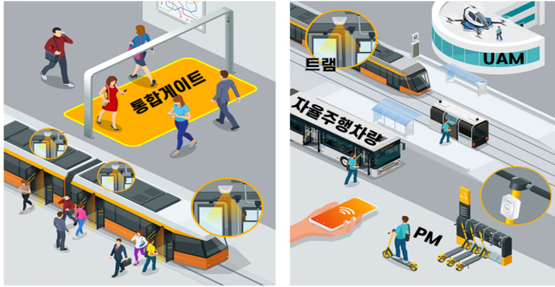 1. 교통서비스 확대: 편리하고 안전한 대중교통 이용 환경 조성 혼잡한 출퇴근 시간대의 승하차 시간을 획기적으로 단축할 '태그리스' 시스템을 고도화한다. 또한, AI와 디지털 트윈(Digital Twin) 기술을 활용하여 철도 및 환승센터의 혼잡과 재난을 예측하는 시스템을 구축하여 더욱 편리하고 안전한 대중교통 환경을 조성할 계획이다.