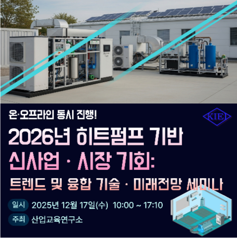 글로벌 기업들이 이 고온 히트펌프와 스마트 제어 기술로 경쟁력을 강화하고 있으며 국내 기업들 역시 에너지 효율 향상과 탄소 감축을 위한 기술 도입과 사업 전략을 적극 추진하고 있는 가운데, 산업교육연구소가 오는 17일에 “2026년 히트펌프 기반 신사업ㆍ시장 기회: 트렌드 및 융합 기술ㆍ미래전망 세미나”를 개최한다고 밝혔다.