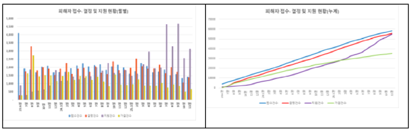 피해 주택 매입 실적 급증… 4분기 2,113호로 1분기 대비 10배↑특히 피해 주택 매입 실적은 올해 1분기 214호에서 4분기 2,113호로 10배 이상 증가하며 피해 복구에 속도가 붙었다. 국토교통부는 "긴급 경매·공매 유예 협조 요청(총 1,086건 누계)과 함께 주거·금융·법률 지원(총 54,760건 누계)"을 제공해 피해자의 실질적 회복을 돕고 있다고 설명했다.