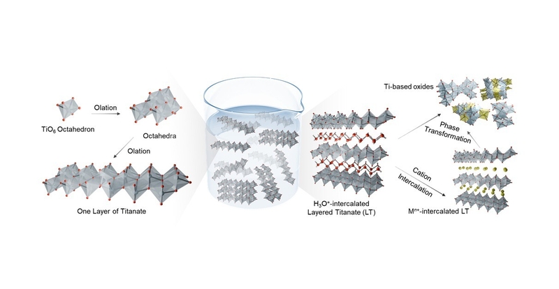 층상 티타네이트는 얇은 층이 겹겹이 쌓인 구조의 티타늄 산화물로, 층과 층 사이 공간에 금속 양이온을 수용할 수 있어 배터리 전극이나 촉매 지지체 소재로 주목받아 왔다. 그러나 기존에는 고온 열처리와 강산 세척 과정을 거쳐야 했고, 삽입 가능한 금속 종류도 제한적이라는 한계가 있었다.