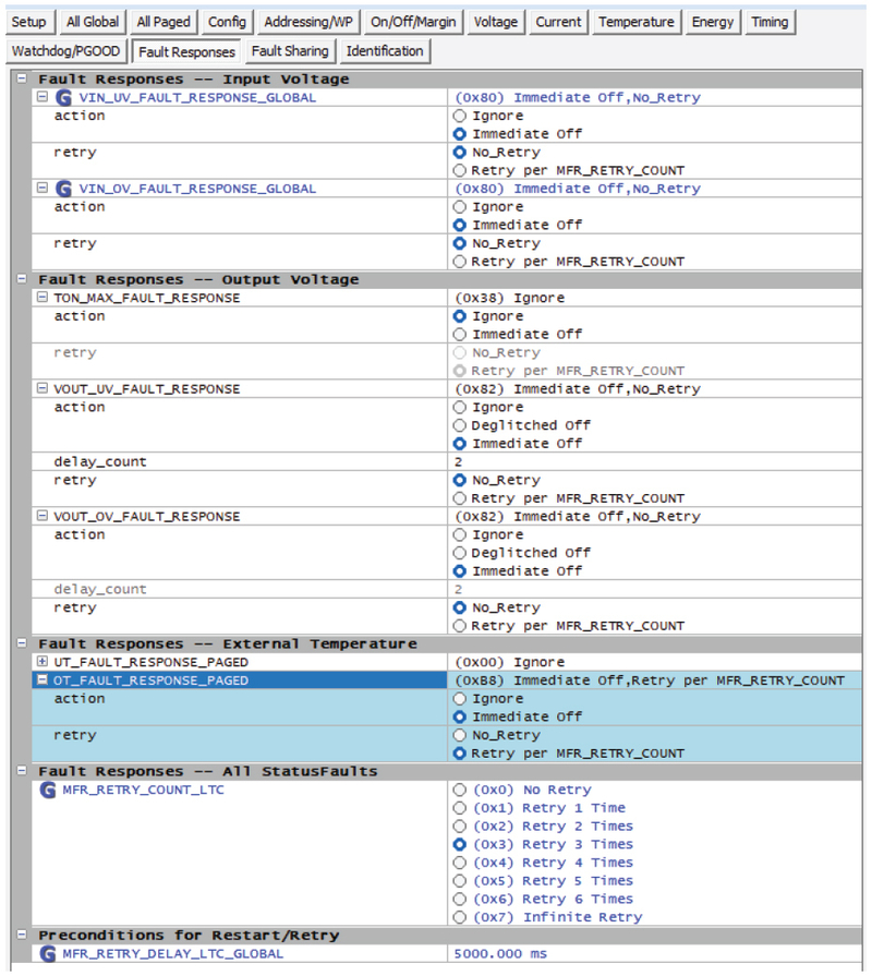 PSM은 높은 분해능의 ADC를 갖추고 있어 전압과 온도를 정밀하게 모니터링한다. QB 보드에서 출력 전압과 온도는 약 ±0.5% ~ ±1.0% 범위의 정확도로 보고되며, 이를 통해 정밀한 전원 예산 관리가 가능해진다. 전압, 전류, 온도에 대한 신뢰성 있는 측정값은 솔루션이 다양한 조건에서 어떻게 동작하는지에 대한 깊은 통찰을 제공하며, 엔지니어는 성능을 안전한 범위 내에서 최대치까지 끌어올릴 수 있다. 텔레메트리 기반으로 EEPROM 매개변수 제한값을 설정하고 경고 임계값을 미세 조정함으로써 솔루션이 불필요한 결함을 일으키지 않으면서 항상 최고 성능을 유지하도록 할 수 있다(그림 2).