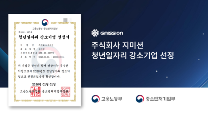 이번 선정으로 지미션은 2026년 1월부터 2028년 12월까지 3년간 청년 고용 관련 정부 지원사업에서 다양한 혜택을 받는다. 정부사업 우대, 병역 지정업체 가점, 금융기관 금리 우대, 정기 세무 조사 제외 등이 주요 인센티브로 제시됐다.