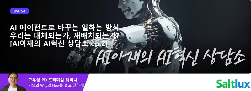 마지막으로 AI 에이전트 시대에 인간에게 요구되는 변화도 주요 주제로 다뤄진다. 인간은 대체되는 존재가 아니라 재배치되고 역할이 재정의되는 존재라는 관점에서, AI와 협업하기 위한 실전 스킬과 태도를 살펴본다. 이번 웨비나는 AI 에이전트를 둘러싼 막연한 기대와 불안을 넘어 기업과 개인이 준비해야 할 현실적인 방향을 제시할 것으로 기대된다.