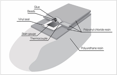 인공 손가락의 골격 부분에는 알루미늄을 사용하고, 골격 바로 아래에 인공 손가락을 사람 피부로 가온하기 위한 실리콘 러버 히터를 설치해 두었다. 골격 주위를 덮는 사람 손가락을 모방한 부분은 연질 폴리우레탄 수지를 사용한다. 센서는 변형 게이지를 인공 손가락 끝부분에서 뿌리까지 4개를 배치하였으며, 열원은 인공 손가락 중앙부, 열전대는 변형 게이지와 열원 사이에 배치되어 있다.