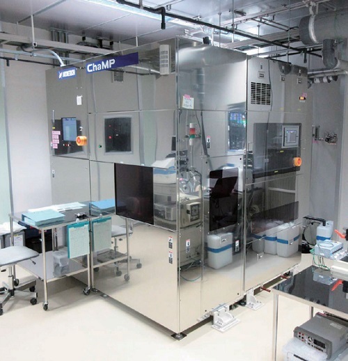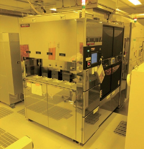 첫 번째는 인라인형 i선 노광장치(그림 2)이다. Canon사제 i선 스테퍼(FPA-3030i5+)와 도쿄일렉트론사제 코터 디벨로퍼(ACT8)가 접속되어 포토레지스트의 도포, i선에 의한 축소 노광, 현상을 연속 처리할 수 있는 장치이다. 포토레지스트는 포지티브형 2종류, 네거티브형 1종류, 후막형 1종류를 탑재하고 있으며, 다양한 공정에 맞춰 포토레지스트 구조의 형성이 가능하다. 또한 이러한 장비를 사용함으로써 안정적으로 4인치 웨이퍼 전면에서 0.5µm 정도의 해상도, 높은 스루풋의 리소그래피를 실현하고 있다.