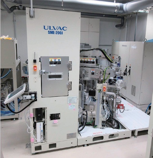 세 번째는 알박(ULVAC)사제 클러스터형 스퍼터 장치(SME-200J)(그림 4)이다. Nb 초전도 배선의 성막에 사용하고 있는 장치로, 고품질 Nb 박막을 증착할 수 있다. DC 마그네트론 스퍼터링보다 높은 전이 온도와 높은 잔류 저항비(Residual Resistivity Ratio: RRR)를 실현한다. 이에 더해 높은 스루풋 및 낮은 오염인 것이 요구되기 때문에 이 장치는 웨이퍼 직접 이송으로 로드락실에 25장의 웨이퍼를 세트할 수 있으며 높은 스루풋·낮은 오염을 실현하고 있다.