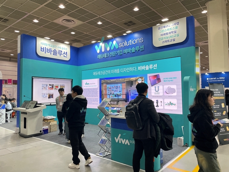 비바솔루션은 교실 공간 설계 인테리어 정보통신기술 기반 기자재 도입 교육 솔루션 적용까지 아우르는 통합형 스마트 미래교실 구축 모델을 제시했다. 다수의 공간재구조화 대상 학교와 그린스마트스쿨 구축 경험을 바탕으로 실제 학교 현장에서 적용된 사례를 중심으로 미래형 교실 환경을 구현했다. 전자칠판과 인공지능 기반 교육 솔루션을 중심으로 교사와 학생 간 상호작용을 강화하는 수업 구조가 강조됐으며 시간과 장소의 제약을 최소화한 학습 환경 구성에 초점을 맞췄다.