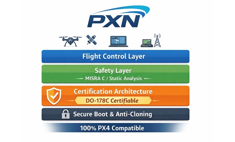 여기에 PXN은 설계 단계부터 국제 항공 소프트웨어 안전 인증 표준 ‘DO-178C’을 충족하도록 구조화됐다. 또한 항공·자동차 안전 코딩 규칙 ‘MISRA C/C++’도 준수한다. 사측은 이에 대해, 드론 운용 중 발생 가능한 잠재적 오류를 최소화하고 예측 가능한 비행 성능을 보장한다고 강조한다. 승인된 소프트웨어만 실행되는 보안 부트 기술과 복제 방지 체계 또한 PXN의 강점으로 평가받는다.
