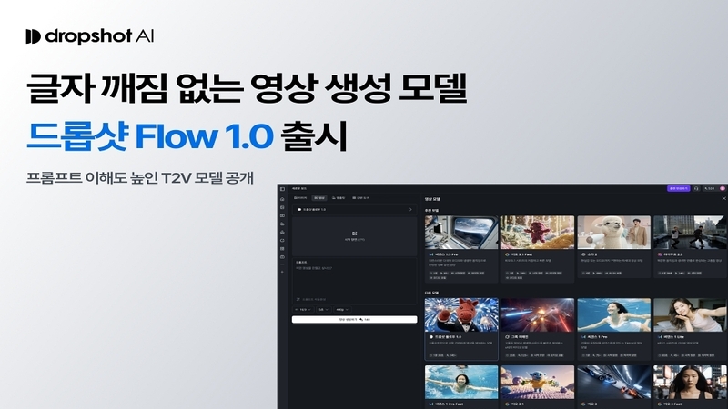 올인원 AI 크리에이티브 플랫폼 ‘드롭샷 AI’를 운영하는 지로가 모델 간 에이전트 연동 기술을 적용한 영상 생성 AI 모델 ‘드롭샷 Flow 1.0’을 정식 출시했다. 이번 모델은 프롬프트 정확도와 텍스트 표현 안정성을 개선한 것이 특징이다.