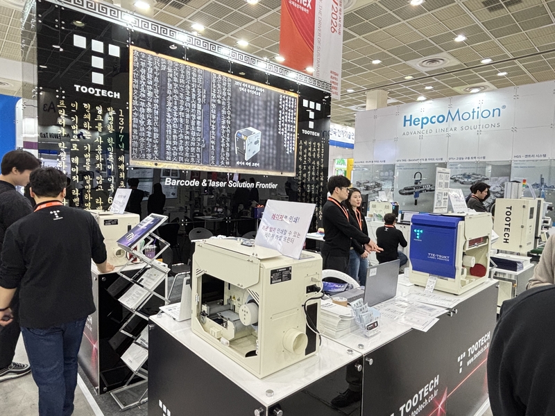 투테크가 ‘스마트공장·자동화산업전 2026(Smart Factory+Automation World 2026, 이하 AW 2026)’에 참가해 레이저 인쇄 기반 오토 라벨러 장비를 공개했다.
