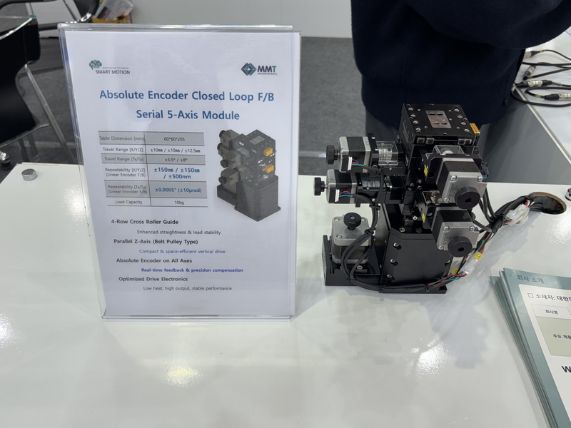 [AW 2026] 엠엠티, 절대형 엔코더 기반 5축 스테이지 모듈로 정밀 모션 제어 기술 강조