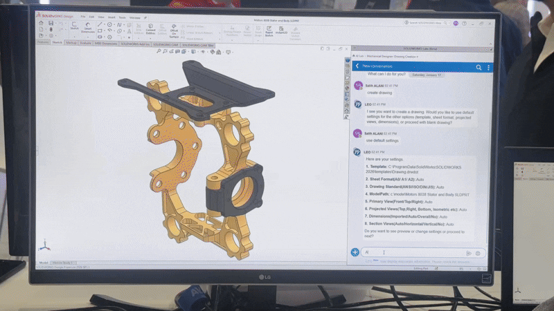아우라는 프로젝트 맥락과 요구 조건을 정리하고, 조직 내부 자산과 표준·규격을 엮어 설계 의사결정의 출발점을 만든다. 이어 레오는 형상 편집, 시뮬레이션, 제조로 이어지는 작업 순서를 제안하며 실제 변경 작업을 실행 단위로 정리한다. 마리는 소재·공정 선택 과정에서 강도·피로 같은 물성뿐 아니라, 규제·지속가능성(Sustainability) 조건까지 검토해 현실 제약을 걸러낸다.