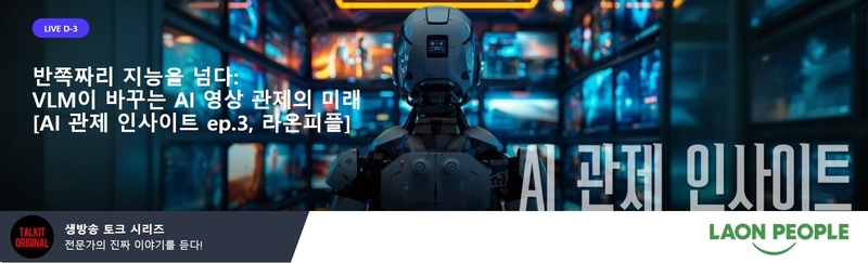 이 같은 흐름 속에서 토크아이티가 오는 3월 13일(금) 오후 2시부터 3시까지 '반쪽짜리 지능을 넘다: VLM이 바꾸는 AI 영상 관제의 미래'를 주제로 생방송 토크 웨비나를 진행한다. 토크아이티의 AI 관제 전문 토크 시리즈 'AI 관제 인사이트' 세 번째 에피소드로 진행되는 이번 웨비나는 VLM의 기술적 진화와 실무 적용 전략을 현장 관점에서 풀어보는 자리다.
