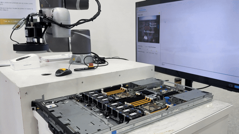 A. 출발은 비전 내장형 코봇이지만, 거기서 끝나는 건 아니다. 비전으로 기준점을 읽고, 모바일 플랫폼과 결합해서 공정 사이를 이동하고, 필요한 위치에서 다시 좌표를 맞추고, 이후 검사·피킹 등 실제 작업까지 이어지는 흐름. 이렇게 전체를 하나의 자동화 단위로 통합하는 것이 우리의 청사진이다. 피지컬 AI 활용 방안도 그 연장선이 될 것이다.