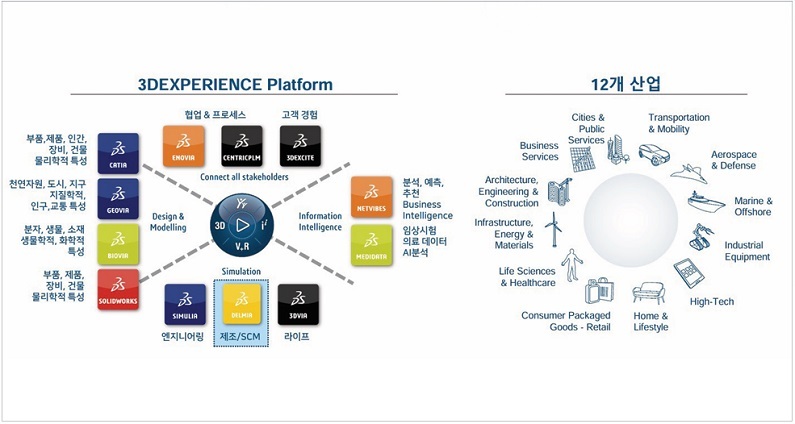 이러한 산업적 배경 속에서 프랑스 소재 시뮬레이션 및 3차원(3D) 설계 솔루션 업체 다쏘시스템이 신개념 비전을 선포했다. 이 회사의 가상 환경 방법론 ‘버추얼 트윈(Virtual Twin)’에 12개 산업군의 지식을 학습시킨 인공지능(AI)를 결합해 솔루션을 제시하겠다는 것. 이때 다쏘시스템 차세대 비전 ‘3D유니버스(3D UNIV+RSES)’를 중심에 두고 있다.