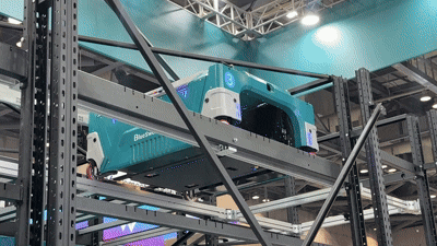 리 원페이(Li Wenfei) 블루스워드 인텔리전트 테크놀로지 세일즈 엔지니어는 “스파이더는 상단에서 수평으로 4방향 주행이 가능하며, 내부에 대상물을 다루는 승강 구조의 ‘피킹 툴(Picking Tool)’을 갖춘 형태”라고 설명했다. 목표 지점에 도달하면 벨트 메커니즘이 하강해 대상물을 끌어올리는 방식이다.