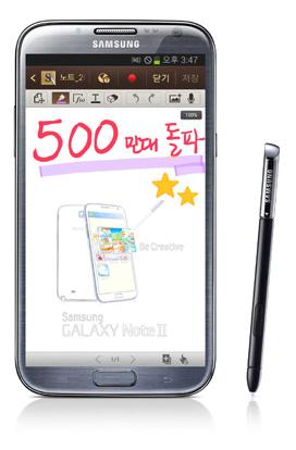 삼성전자가 휴대폰의 기술력과 혁신성을 담아 독자적으로 선보인 스마트 모바일 기기 '갤럭시노트 Ⅱ'가 글로벌 누적 판매 500만대를 넘어서며 노트 카테고리의 성공적 안착을 입증했다.