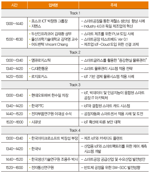표 1. 2015 스마트공장 국제컨퍼런스Ⅰ(3월18일)