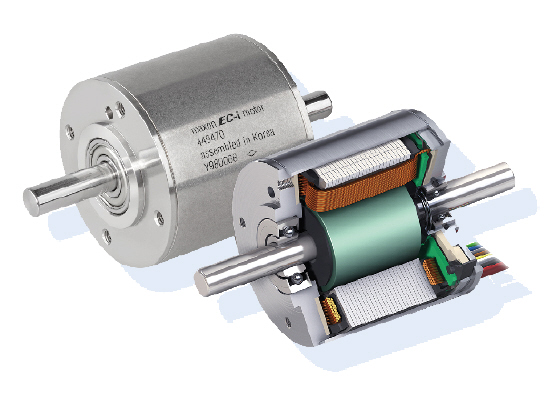 맥슨 BLDC 플랫 모터 EC-i40은 내부의 다극 회전자에 의한 다이내믹한 성능, 높은 토크와 최대 15,000rpm의 속도, 콤팩트한 디자인과 고신뢰성을 자랑하며 예압 볼베어링의 사용으로 브러시리스 모터의 장점인 긴 수명을 더욱 극대화했다.