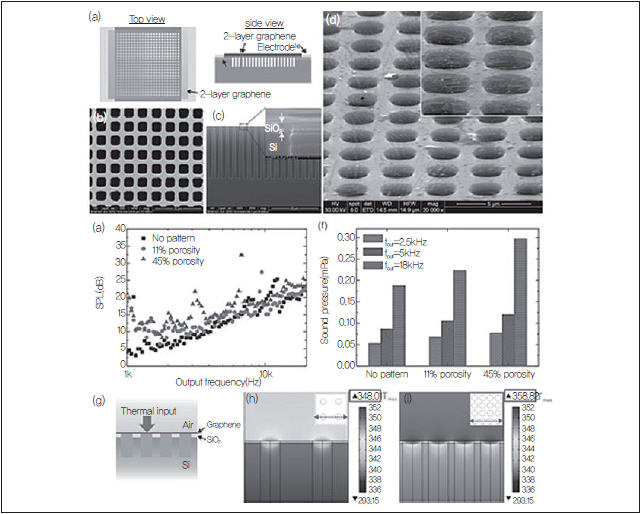 그래핀에 전압을 인가하면 그래핀에 열이 발생하고 열적 팽창에 의해서 그래핀이 진동하는 것을 이용한다(그림 4).