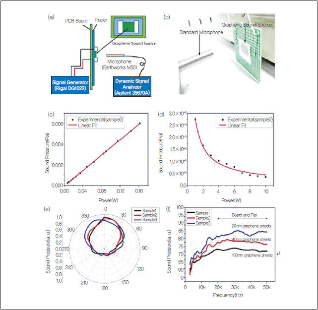 그림 3은 정전기적으로 구동되는 그래핀 스피커(Electrostatically Driven Graphene Speaker, EDGS)의 특성을 나타낸다.