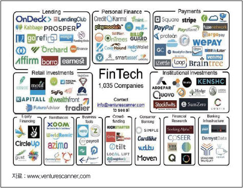국내외 핀테크 기업들이 주로 진출하는 사업 영역은 송금, 지급 결제, 대출 중개, 자산 관리 등이다.