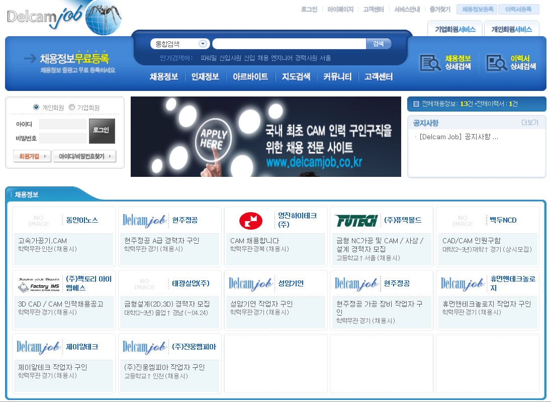 기존 한국델켐 홈페이지 내에서도 이러한 활동이 가능했지만, 구인구직에 최적화된 별도 사이트의 운영을 통해, CAM 분야 맞춤취업 지원 시스템을 구축하여 기업의 인력부족 현상과 취업 희망자들의 구직난을 말끔히 해소시킬 예정이다.