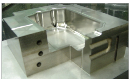 그림 1. DMLS 공정과 NC 가공으로 복합가공한 배터리 케이스의 캐비티 금형 부품