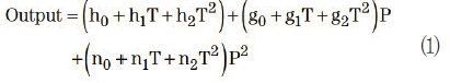 즉, 세 가지 온도와 세 가지 압력 값을 사용해 총 9회 측정을 해야 한다. 이렇게 센서 컨디셔너의 출력에 대한 수학적 2차 방정식이 나온다.