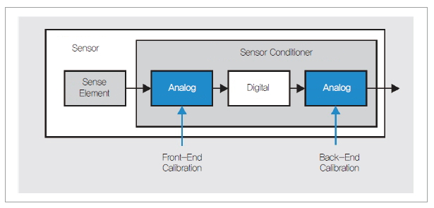아날로그 출력의 혼합 신호 센서 컨디셔너에는 2단계 보정 과정을 사용할 수 있다. 이 방법을 사용하면 아날로그 시그널 체인의 오류를 줄여 센서의 전반적인 정확도를 높일 수 있다.
