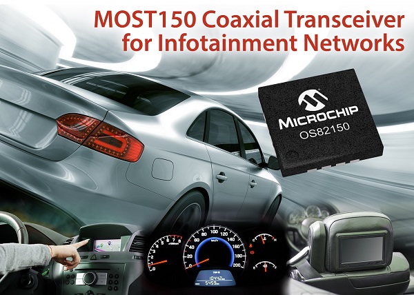 마이크로칩테크놀로지는 업계 최초로 MOST150 동축 트랜시버 제품을 출시했다. OS82150는 최신MOST150 표준을 기반으로 동축 케이블의 활용 범위를 오토모티브 인포테인먼트 네트워크로까지 확대했다. OS82150은 소형 풋프린트 4mm×4mm QFN 패키지로 제공되며 동축 케이블 드라이버와 동축 케이블 리시버를 통합하고 있다.