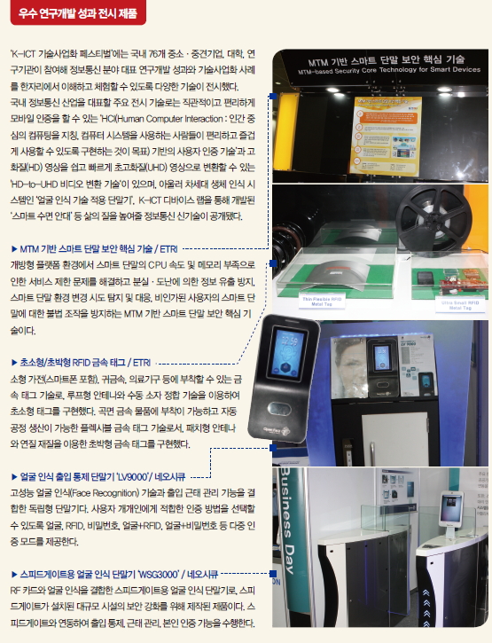 K-ICT* 기술사업화 페스티벌은 그간 정부 지원을 통해 창출된 정보통신 연구개발(R&D) 우수 기술을 선보이는 자리로, 이번 행사는 예년 행사와 달리 연구개발 성과 홍보뿐 아니라 실질적으로 기술 이전 및 사업화가 이루어 질 수 있도록 구성된 것이 특색이다.