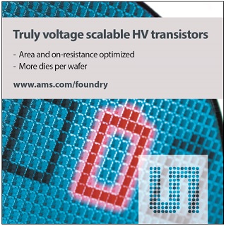 성능 아날로그 IC 및 센서 전문 기업인 ams의 풀서비스파운드리 사업부는 업계 선도적인 0.35µm 고전압 CMOS 전용 공정 플랫폼의 활용을 더욱 확장한다.